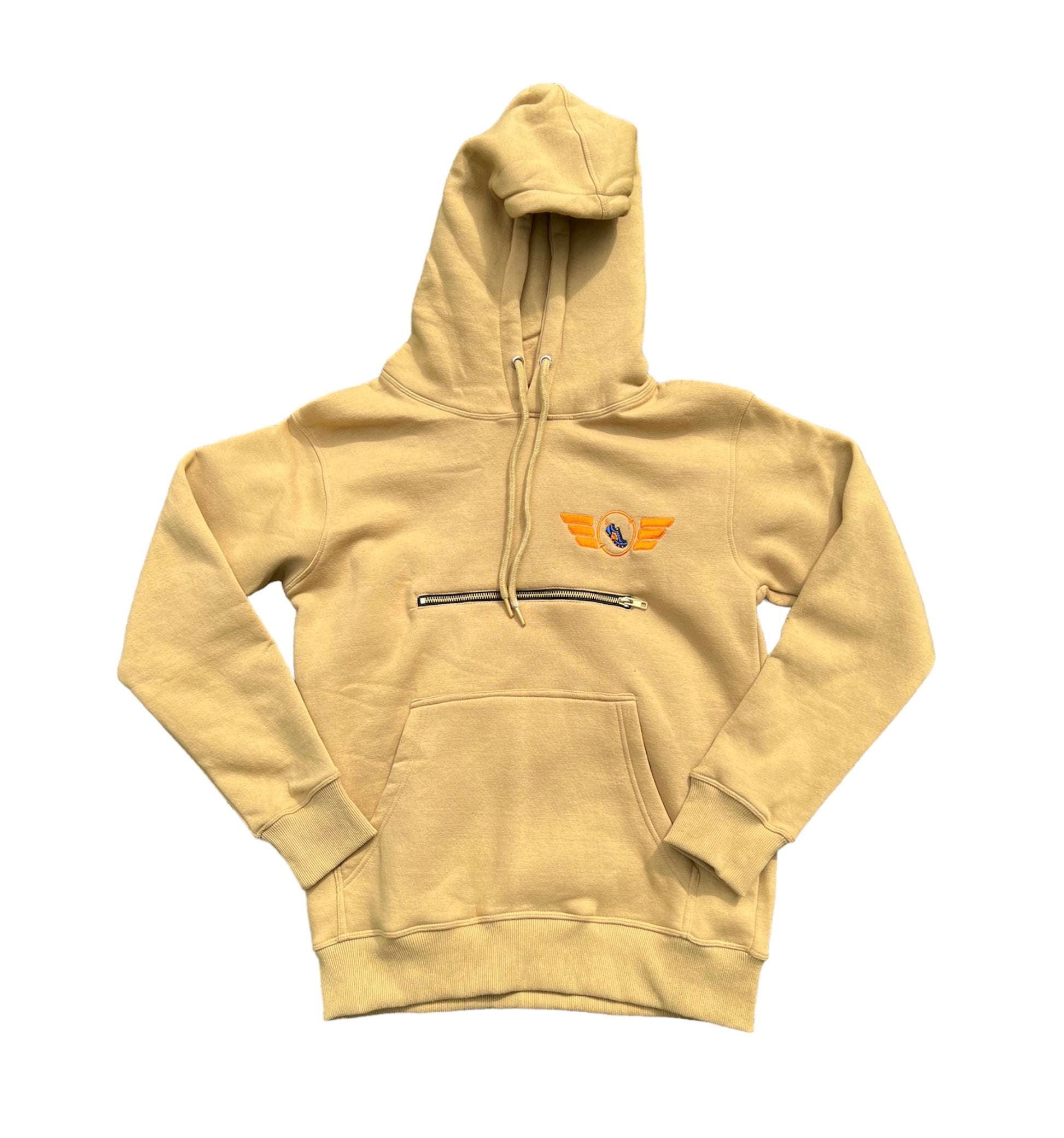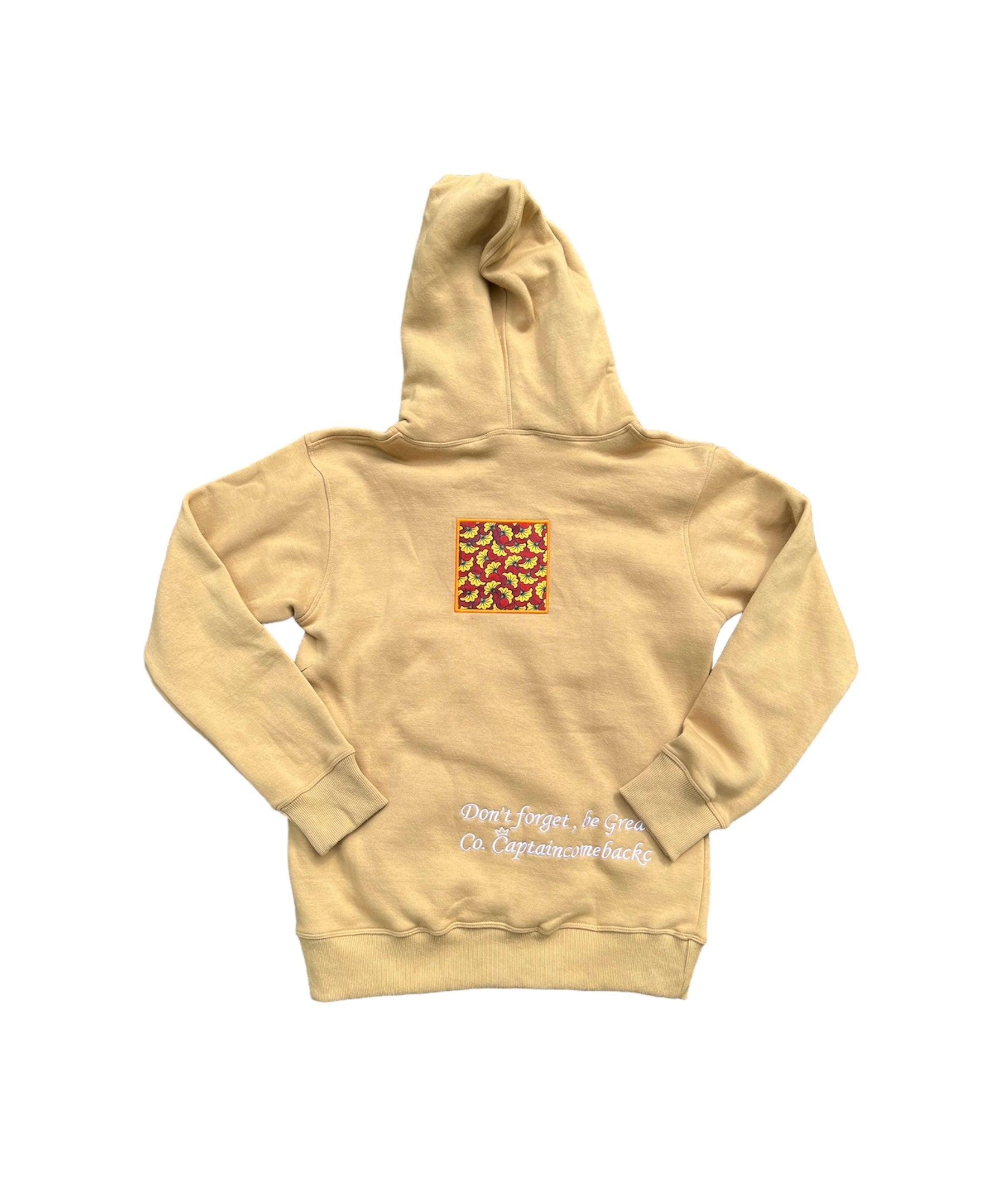 Embroidered Logo on the left side of the chest, with Ankara pattern on the back of the hoodie.Also with a zipper pocket in the front to hold your personal items.